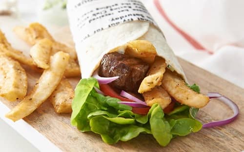 This is how they do it in Greece - chips and lamb in a wrap...simply yum!