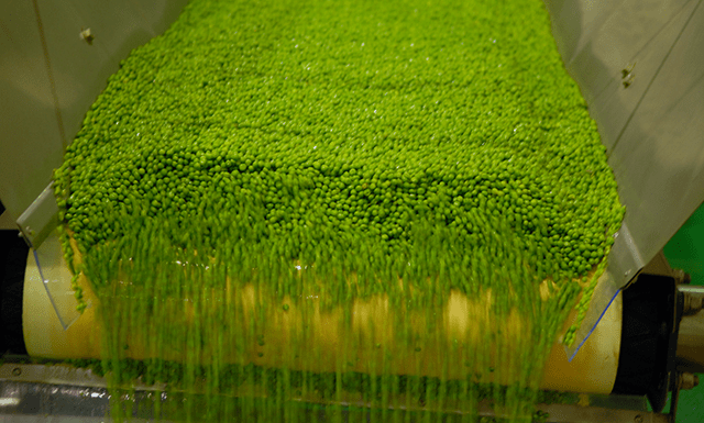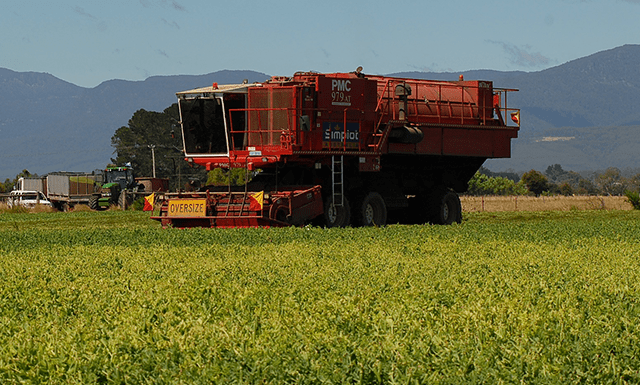 By watching each crop as it matures we pick our peas at their peak with equipment that takes the pea pods off the vine and carefully removes the delicate peas.